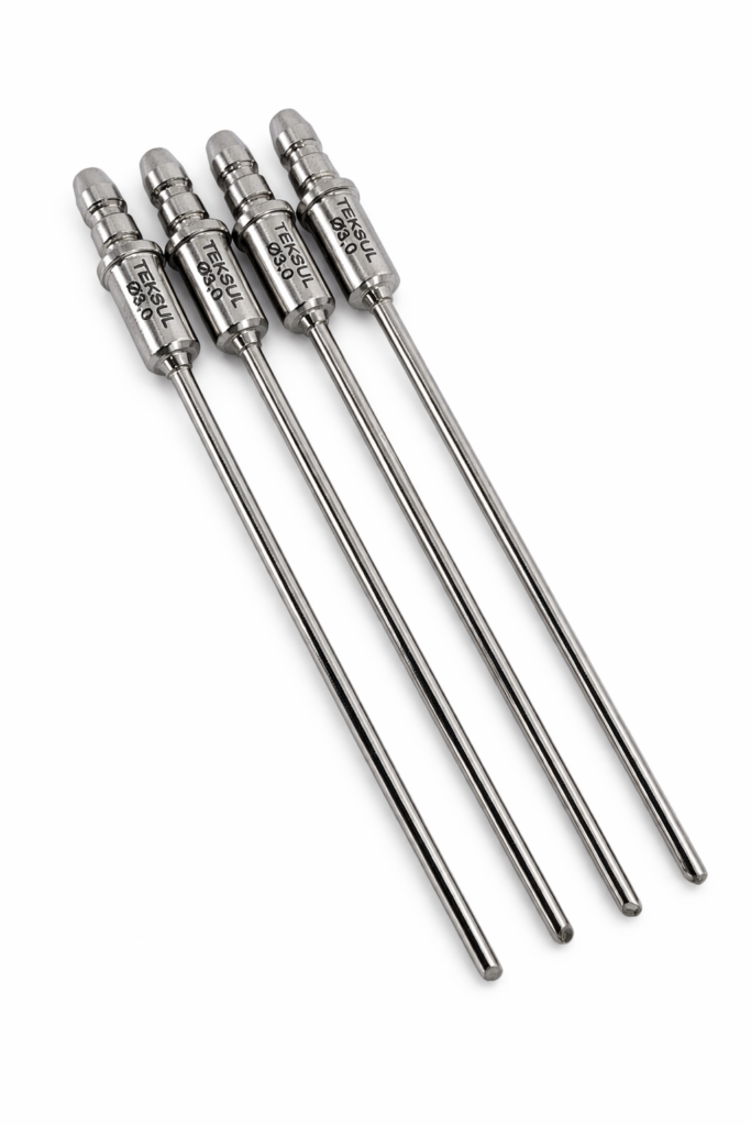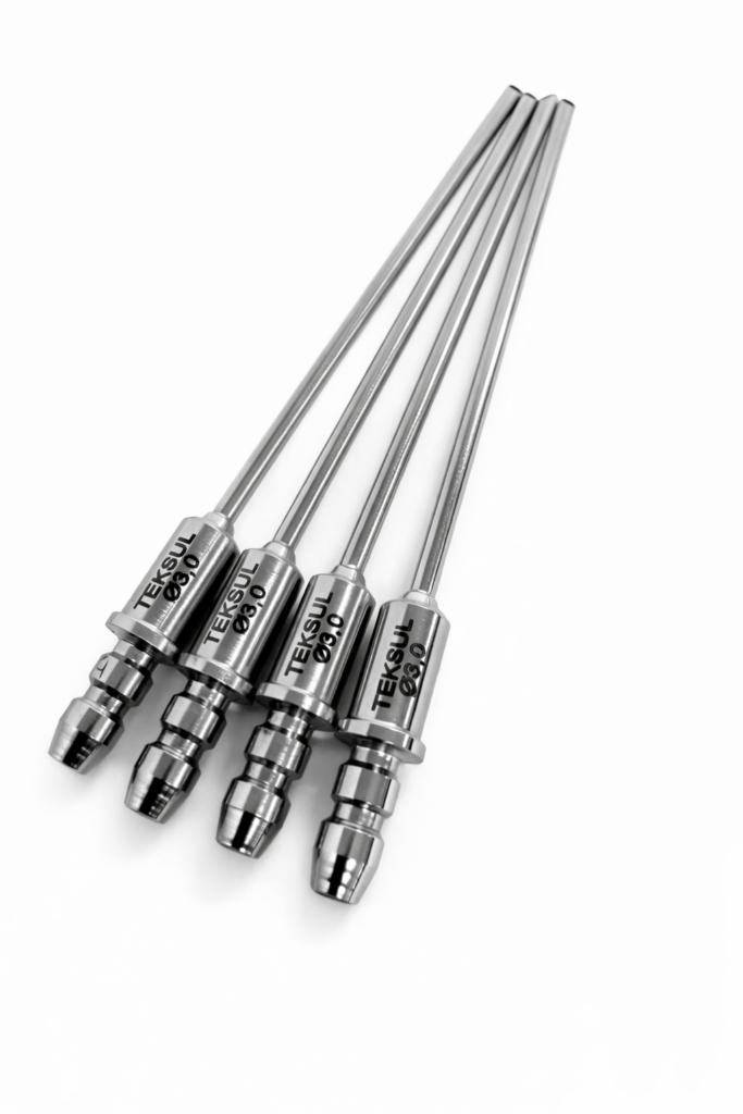 As agulhas de lavagem rígida Teksul são fabricadas em aço inox 316L, eletropolidas e certificadas, garantindo elevada resistência química, fácil higienização e longa vida útil. A soldagem a laser assegura alta integridade estrutural e precisão dimensional, resultando em um processo de lavagem estável, repetível e seguro para frascos, ampolas e recipientes farmacêuticos.