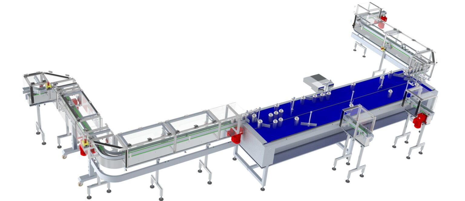 Ela é cuidadosamente dimensionada para o tipo de frasco, características do produto, velocidade nominal da linha, layout disponível e lógica operacional do processo. Do comprimento das esteiras ao comportamento do acúmulo, tudo é projetado para que o fluxo seja contínuo, estável e inteligente, eliminando gargalos, absorvendo flutuabilidades e garantindo que a mesa trabalhe em total sincronia com os equipamentos anteriores e posteriores.
